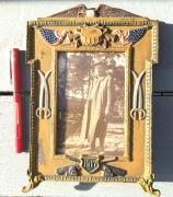 Over the years I have collected just about anything connected to the military and one time I was hot on the decorative WWI frames as you will see. This one happens to have been my favorite it's a heavy bronze frame shaped like a artillery shell and stands 9 1/2" high x 5" wide. It did not have a pho ...Read and See More