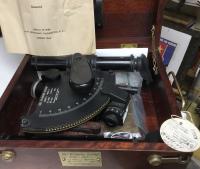 WW2 USNAVY Ball Recording Sextant Mark I Mod 0 made by Mergenthaler Linotype Serial No. 4609 was made in 1944. This Sextant is in a highly polished case with brass fittings and a nomenclature Brass tag on the front. Included along with the Sextant are a Day and Night tube some spare parts and fact ...Read and See More
