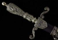 The scabbard and fittings on this sword are very beutiful in my opinion! The hilt and scabbrd fittings are a gilded brass based piece and really looks awesome! The condition of the hilt is wonderful, it has a great color, is very fancy with the eagle and fancy foilage. The initials are on the ...Read and See More