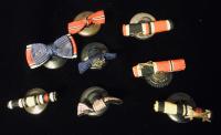 This little group of Button Ribbons is something that I have added to over the years just something to do when I purchased lots of material from vets. There are seven button hole ribbon’s for wear on civilian clothing including WWI and WWII period. The best one has a Eagle Order Ribbon on it the o ...Read and See More
